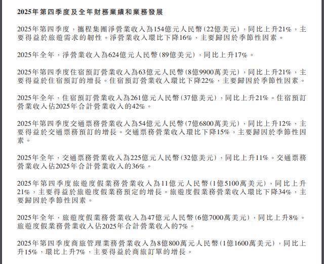 2月26日,携程集团公告2025年第四季度及全年未经审计的财务业绩,同时公布公司董事会变动情况。